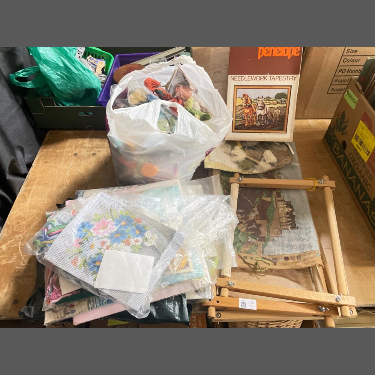 Tapestry delight - a number of tapestry kits including TWILLEYS, THE CRAFT COLLECTION, PENELOPE, a supply of tapisserie wool, mainly by Anchor and 3 tapestry frames 2 approx 73x30cm, and 1 35x28cm,