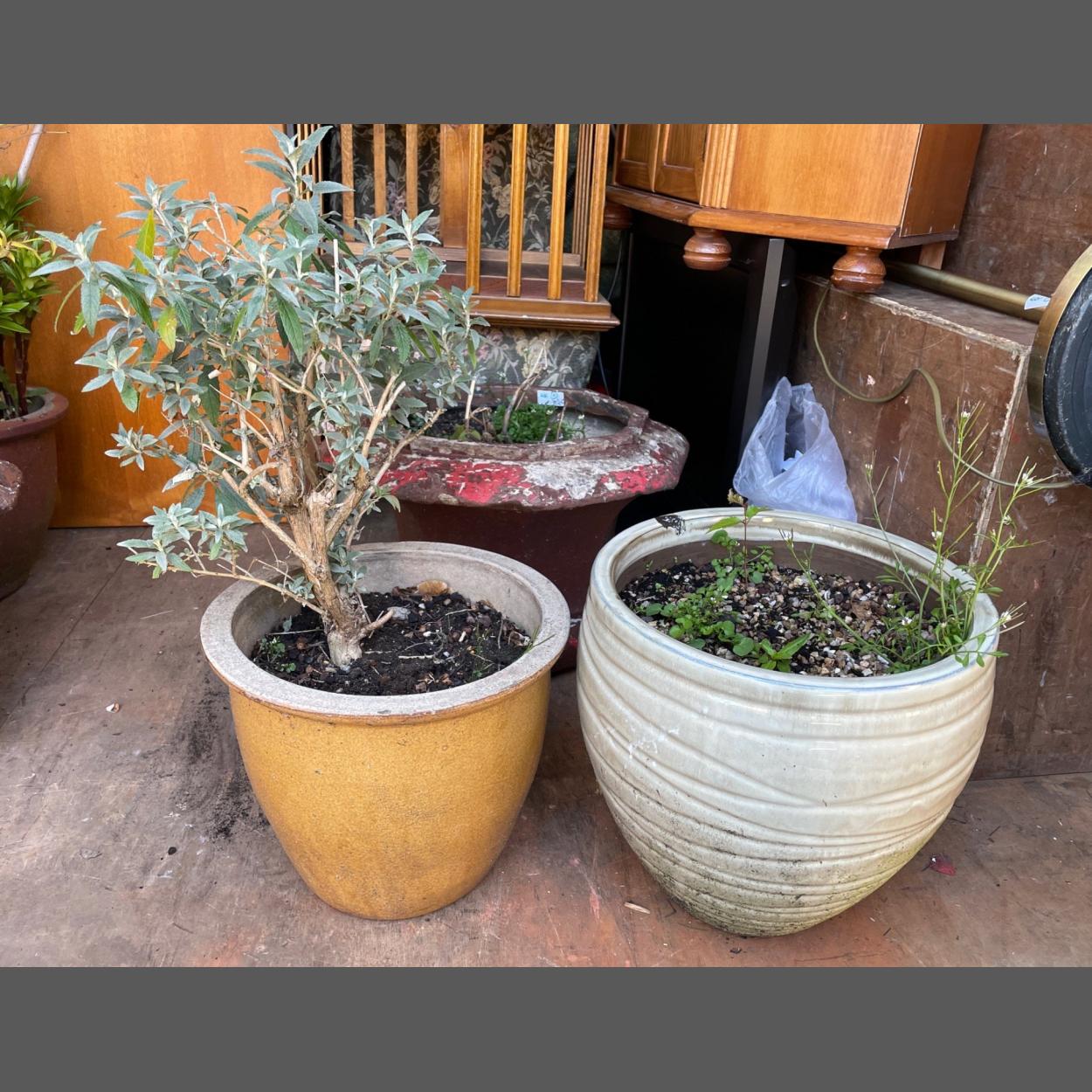 Two ceramic garden containers largest height 32cx diameter 33cm approx