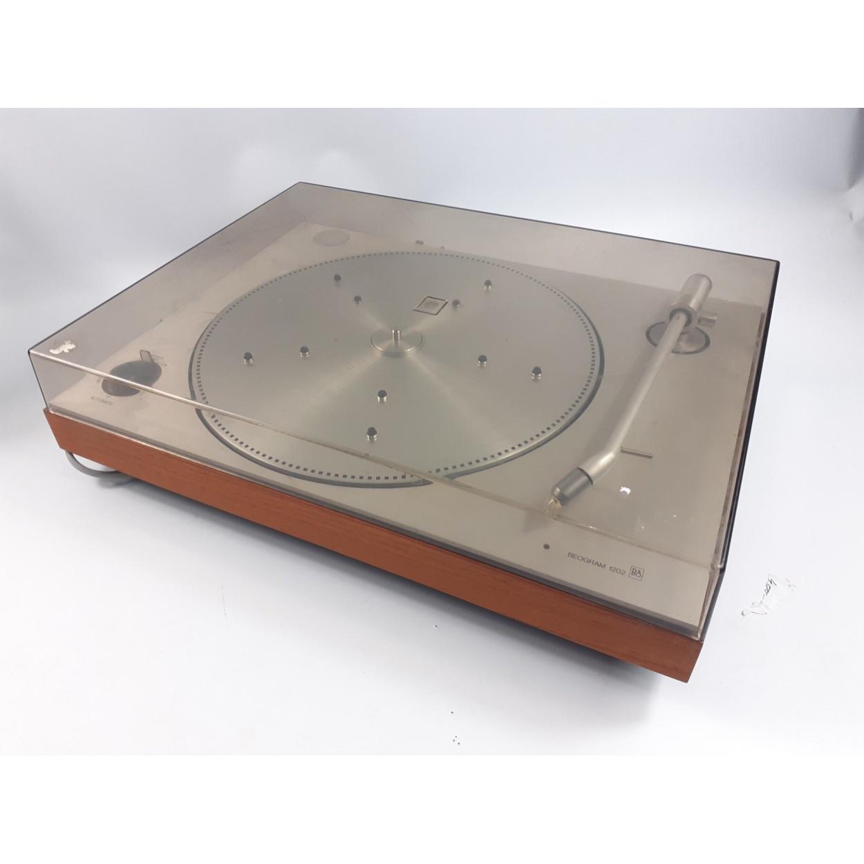A FABULOUS BANG & OULFSEN BEOGRAM 1202 turntable with plug. Dimensions - 43.4cm x 32.4cm. 11.5cm high. Condition - Some scratching on the cover.