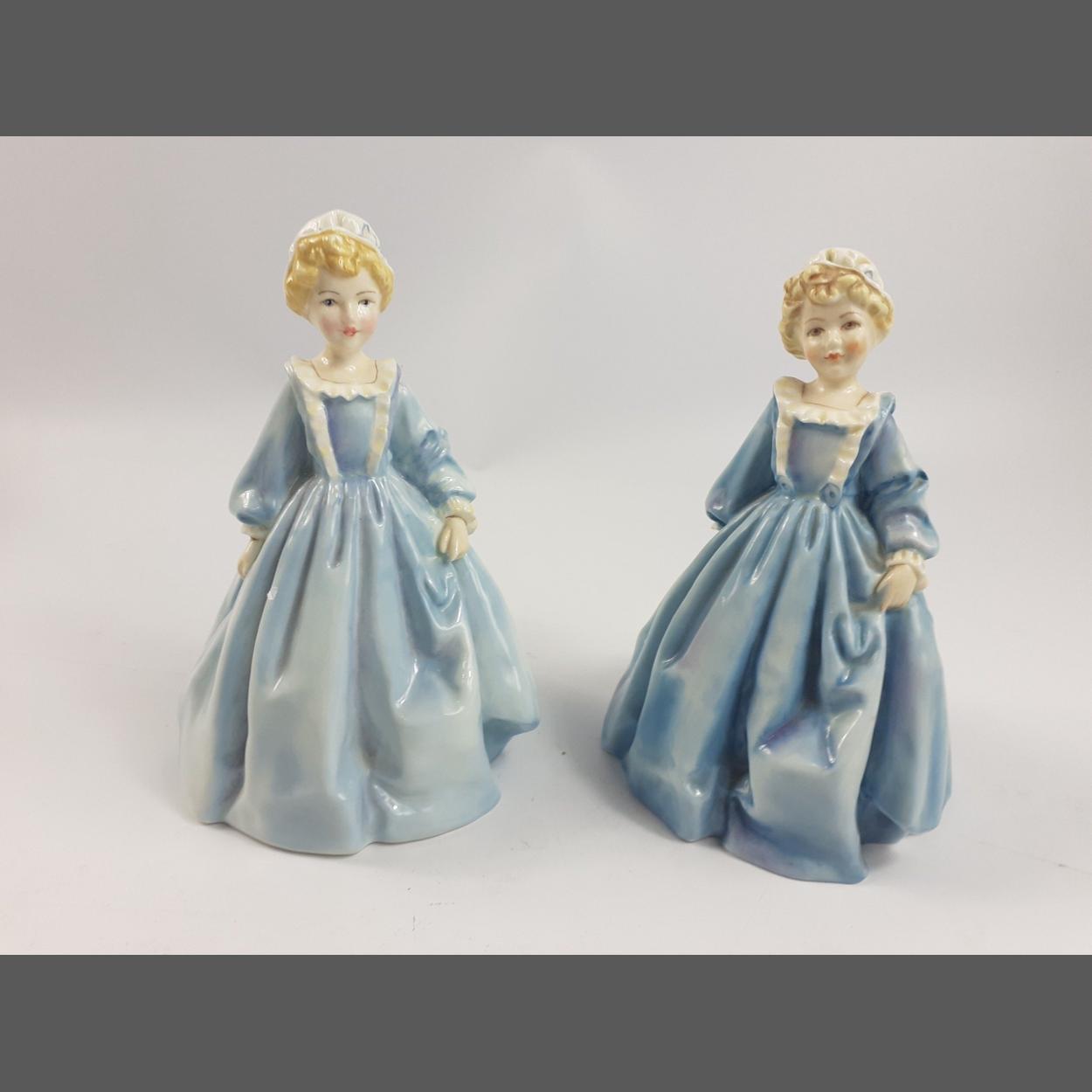 ROYAL WORCESTER - 2 versions of the same figurine modelled by FG DOUGHTY -' Grandmother's Dress' (3081), the earlier edition being stamped 799938, both stand approx 16cm high and have no visible signs of damage