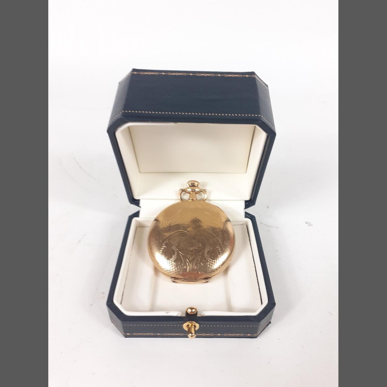 A WW Co Waltham 17 jewel, Elgin USA, gold colour Art Deco design engraved fob watch, face 4cm dia approx