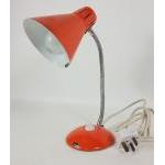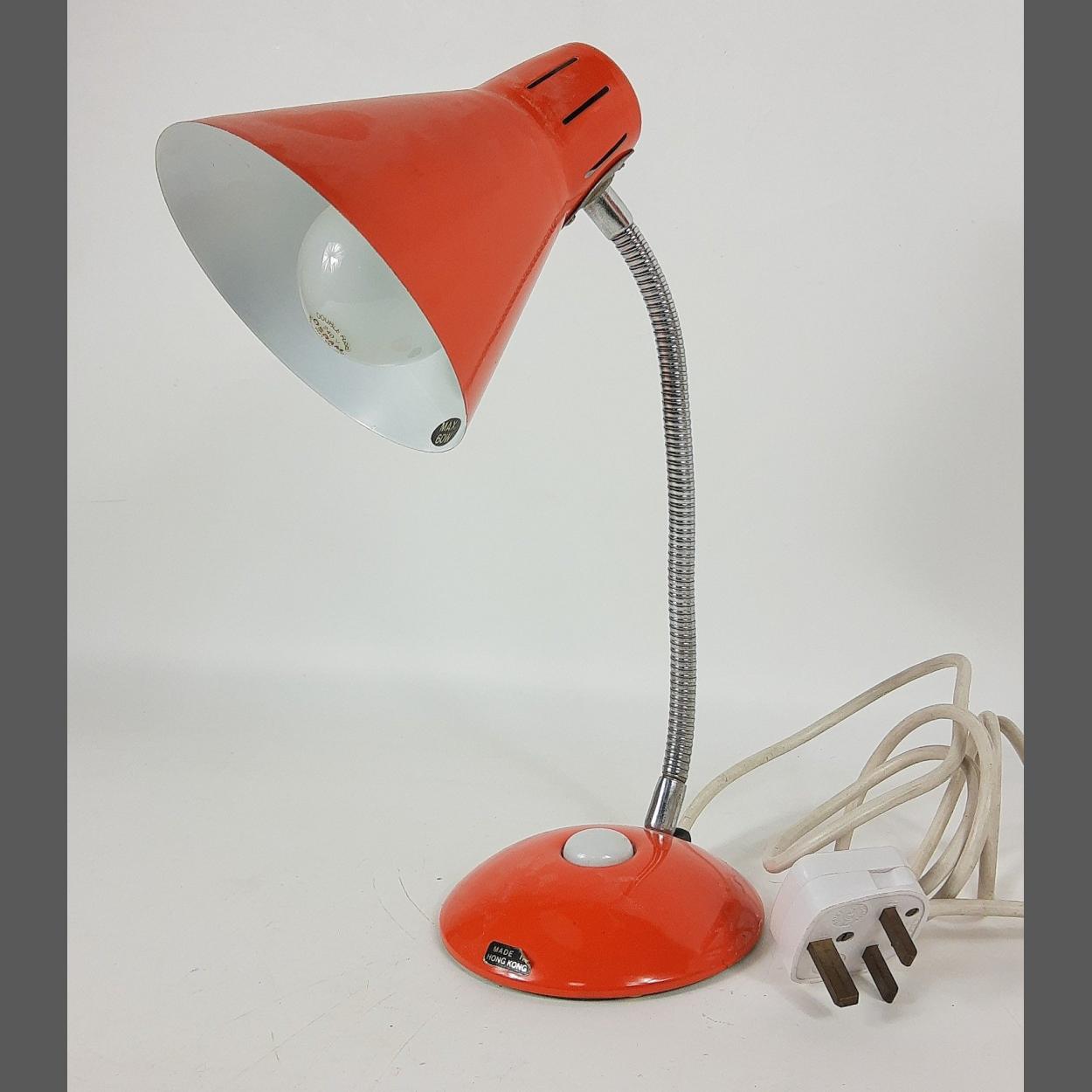 A VIBRANT, RETRO, posable desk lamp complete with plug in an eyecatching orange colour. Dimensions - 40cm high when fully posed. Good condition.