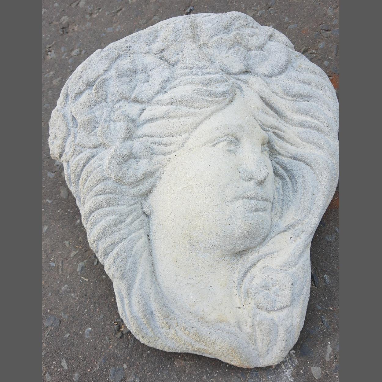 A stone effect lady's face wall mounted plaque - dimensions 30cm x 16cm approx