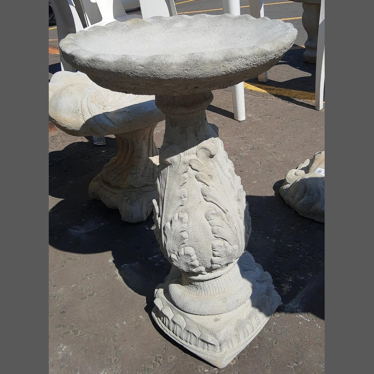 A vineyard bird bath - adorned with vine leaves. Dimensions - 35.1cm wide, 61cm tall approx