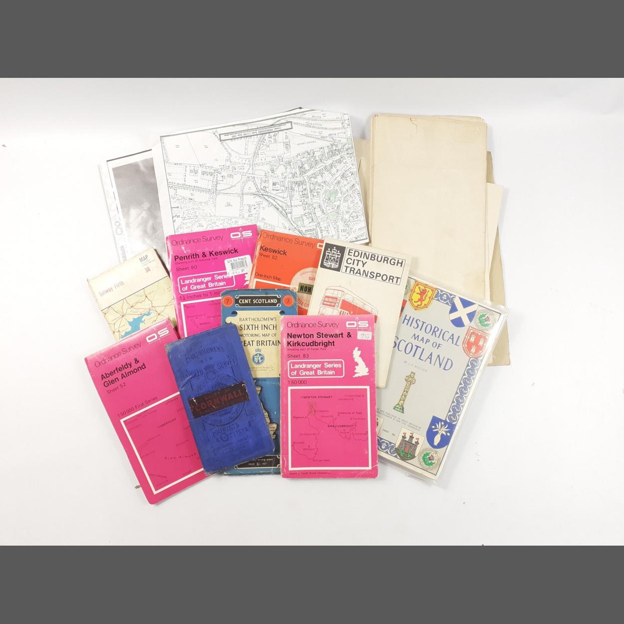 Of local historical interest - a treasure trove of an aerial photograph (A3 size) of old Peebles showing the mills, the railway line ... plus a 1946 Ordnance Survey map of the town, Cademuir hill (1909), Glentress Forest (1909), plus the 1908 edition of the town map and vrious Ordnance Survey scale maps (the sort that don't want to fold away) etc