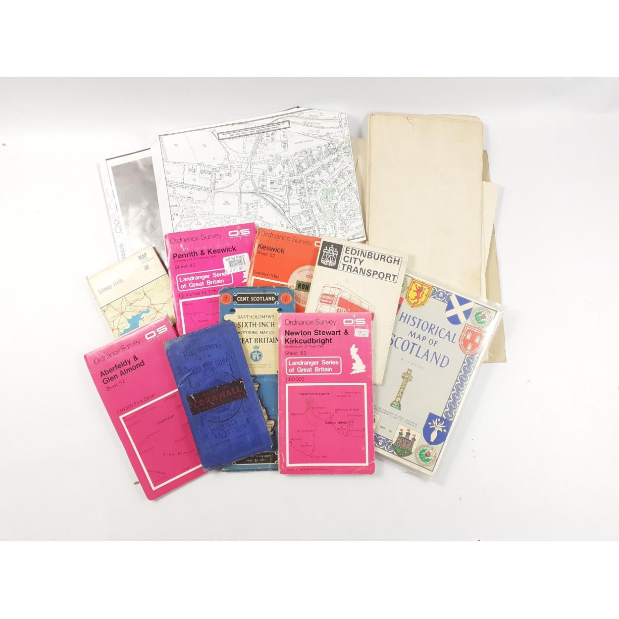 Of local historical interest - a treasure trove of an aerial photograph (A3 size) of old Peebles showing the mills, the railway line ... plus a 1946 Ordnance Survey map of the town, Cademuir hill (1909), Glentress Forest (1909), plus the 1908 edition of the town map and vrious Ordnance Survey scale maps (the sort that don't want to fold away) etc