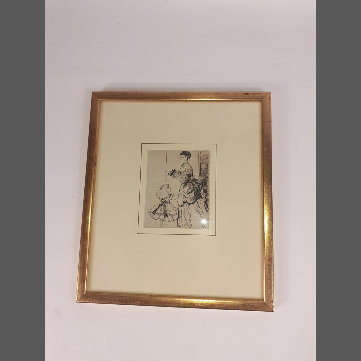 A CHARLES SAMUEL KEENE (1823-91) pen and ink sketch 'Girl in a party dress addressing her Mama' provenance: from the estate of Lord Clark, purchase invoice attached frame size 29x26cm, visible work 11x9cm approx
