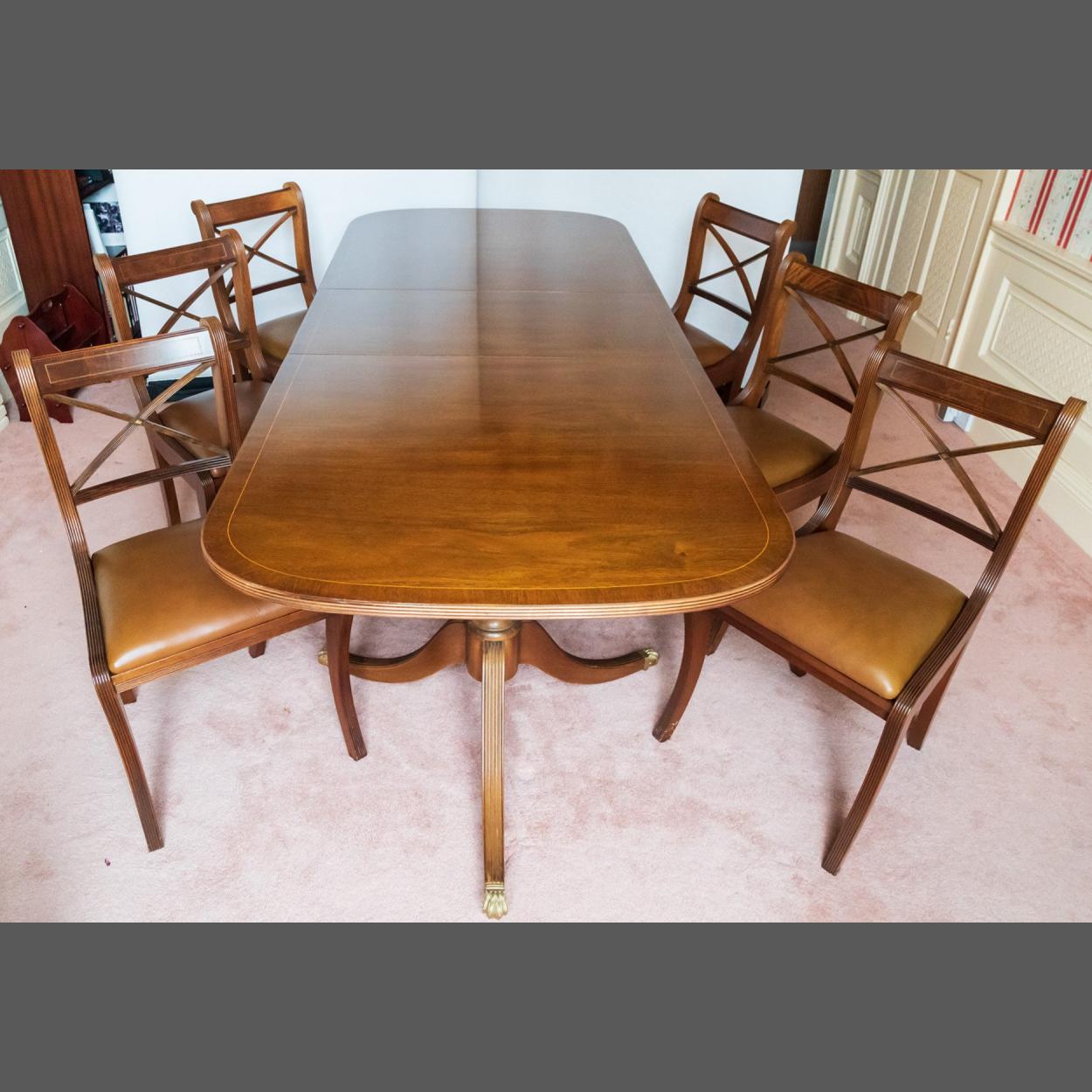 HANDMADE - Richardson handmade bespoke Honduras Flamed Mahogany dining extending section and comes with protective cover pads table with six leather clad Regency cross back with brass inlay(matching 106-110) - 180cm x 90 cm approx without extensions