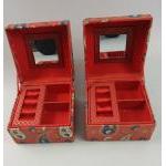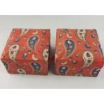 Two colourful fabric Indian jewellery boxes each 13x13x9cm
