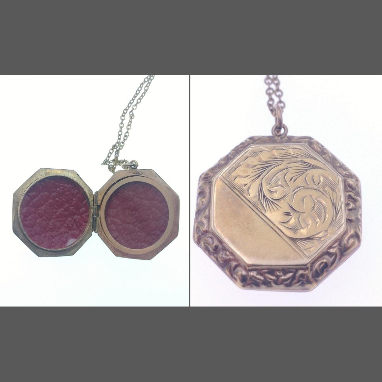 A 9ct B & F stamped pendant which holds space for two pictures - the chain is unmarked 'yellow metal' - gross weight including chain 5.45g gross approx