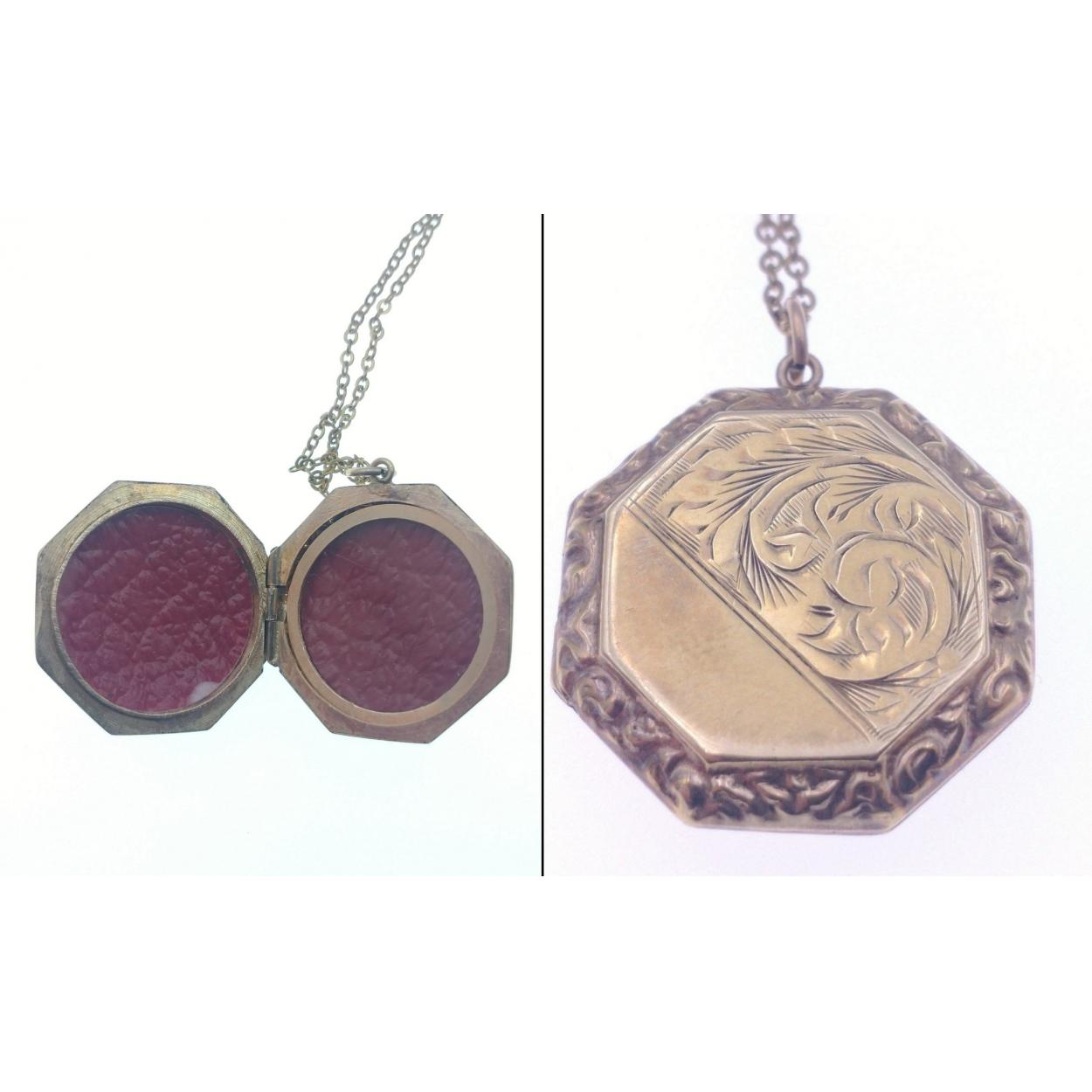 A 9ct B & F stamped pendant which holds space for two pictures - the chain is unmarked 'yellow metal' - gross weight including chain 5.45g gross approx