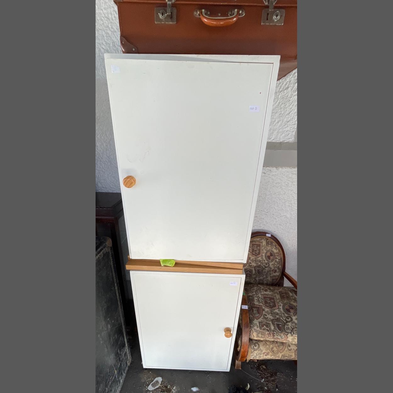 Two large storage cupboards( ideal for the garage) with shelves - height each 84cm x width 60cm x depth 60cm approx each