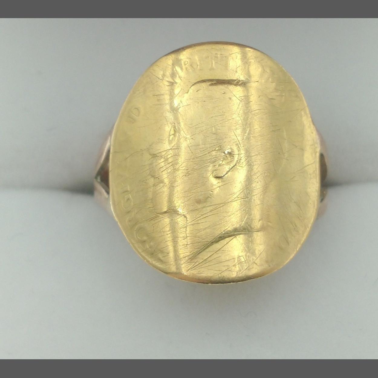 A hammered George V gold 22ct coin with a 375 stamped yellow gold ring base size N total weight combined 4.28g