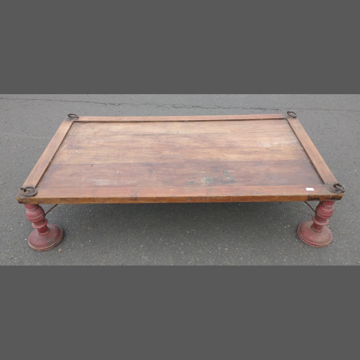 An wooden Indian day bed with large round wooden feet 165x90x35 approx