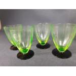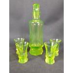 Vintage URANIUM glass to include a small decanter (21cm tall approx), 4 shot glasses and 4 sundae dishes