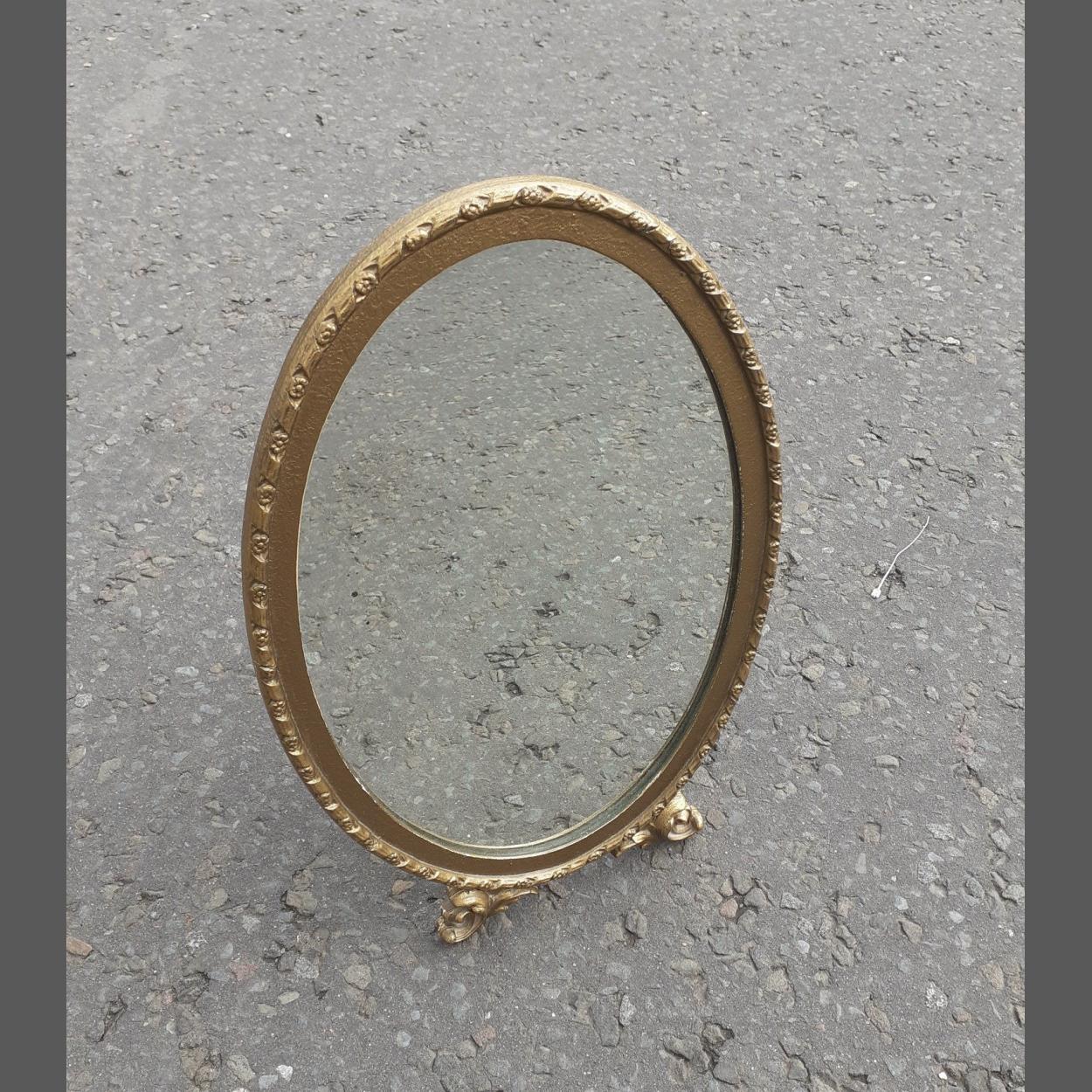 An oval shaped gilt framed table top mirror - dimensions 48cm x 28cm