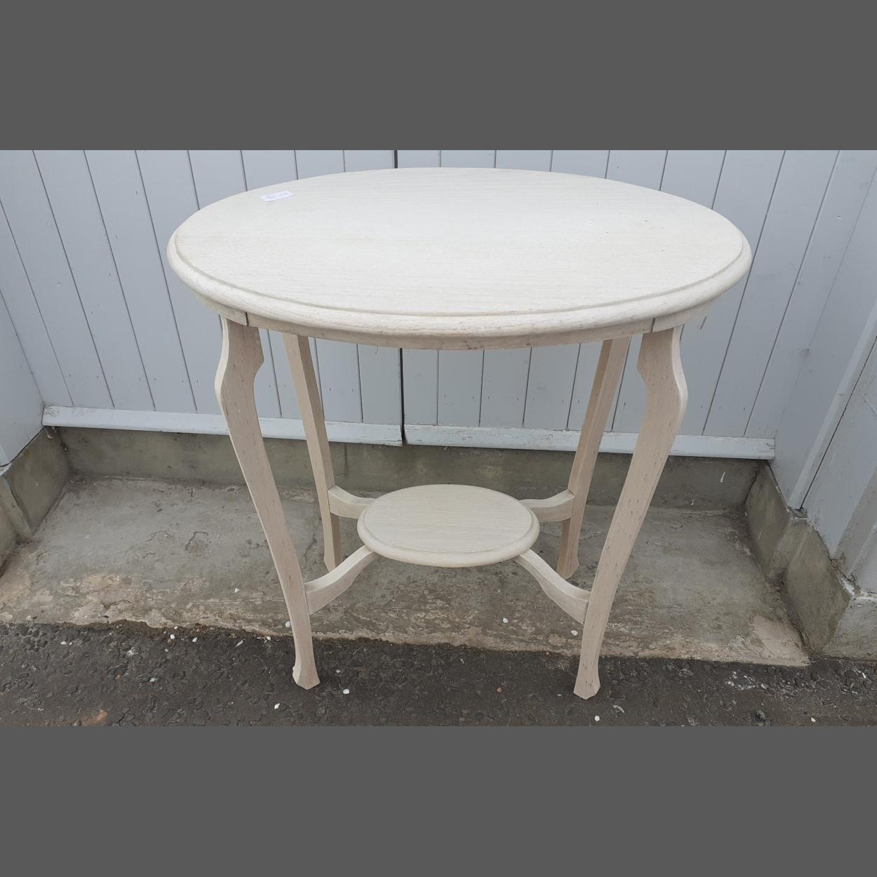 An modern OVAL shaped occasional table with parcel shelf - dimensions 75cm height x 67cm length x 43cm depth