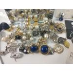 A small mirrored glass jewellery box (12x12x6.5cm approx) filled with earrings to include six pairs by M&S