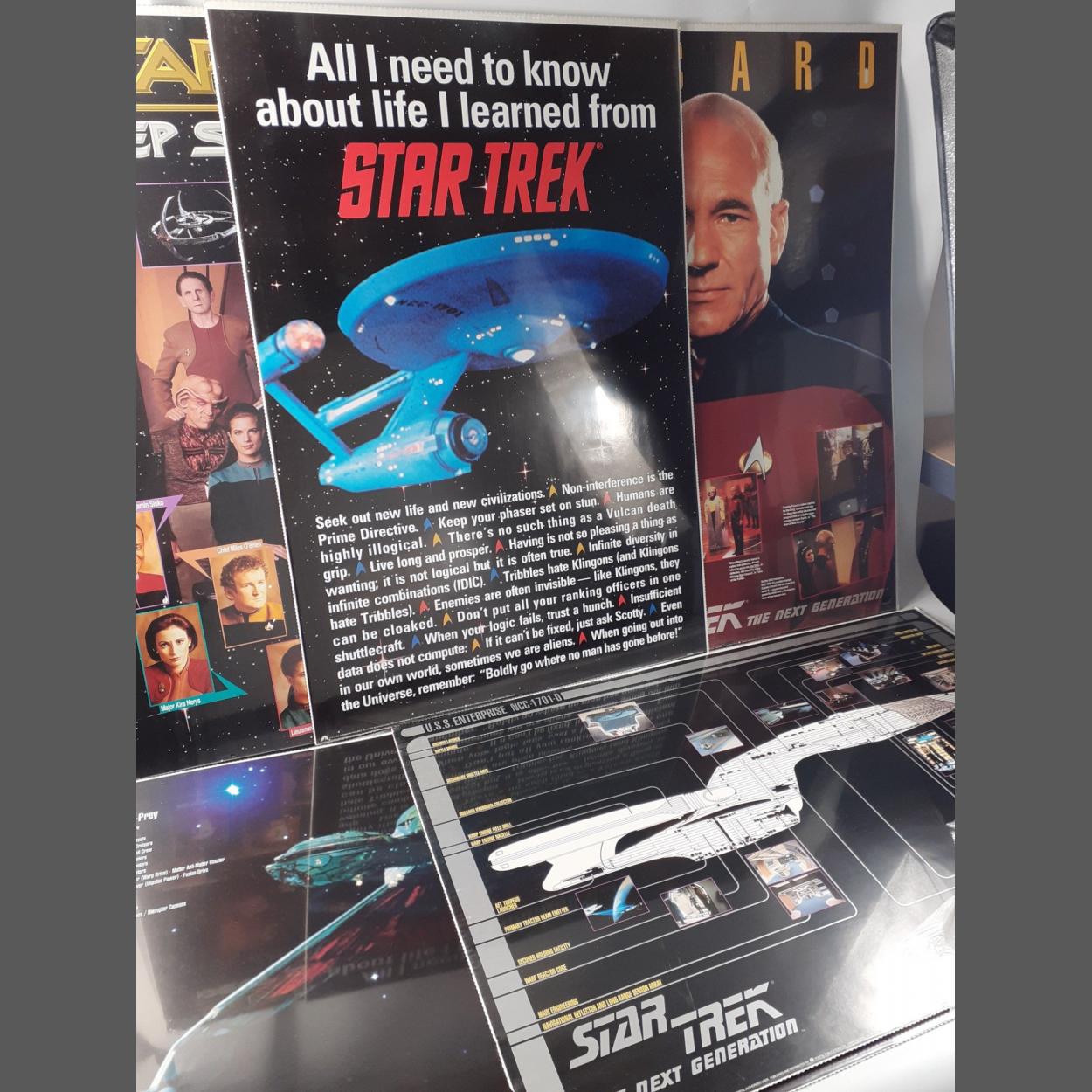 A collection of NEW AND UNUSED 5 Paramount Pictures STAR TREK themed posters. Includes PICARD, USS ENTERPRISE DIAGRAM, KLINGON BIRD OF PREY, DEEP SPACE NINE, & STATEMENT. Each 60x90cm on board.