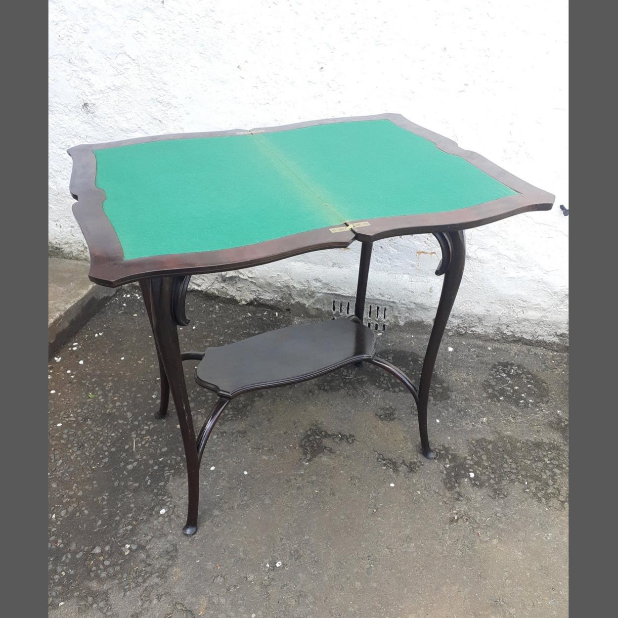 A small VICTORIAN swivel-topped card table with lower shelf - width 65cm x 45cm depth x height 76cm