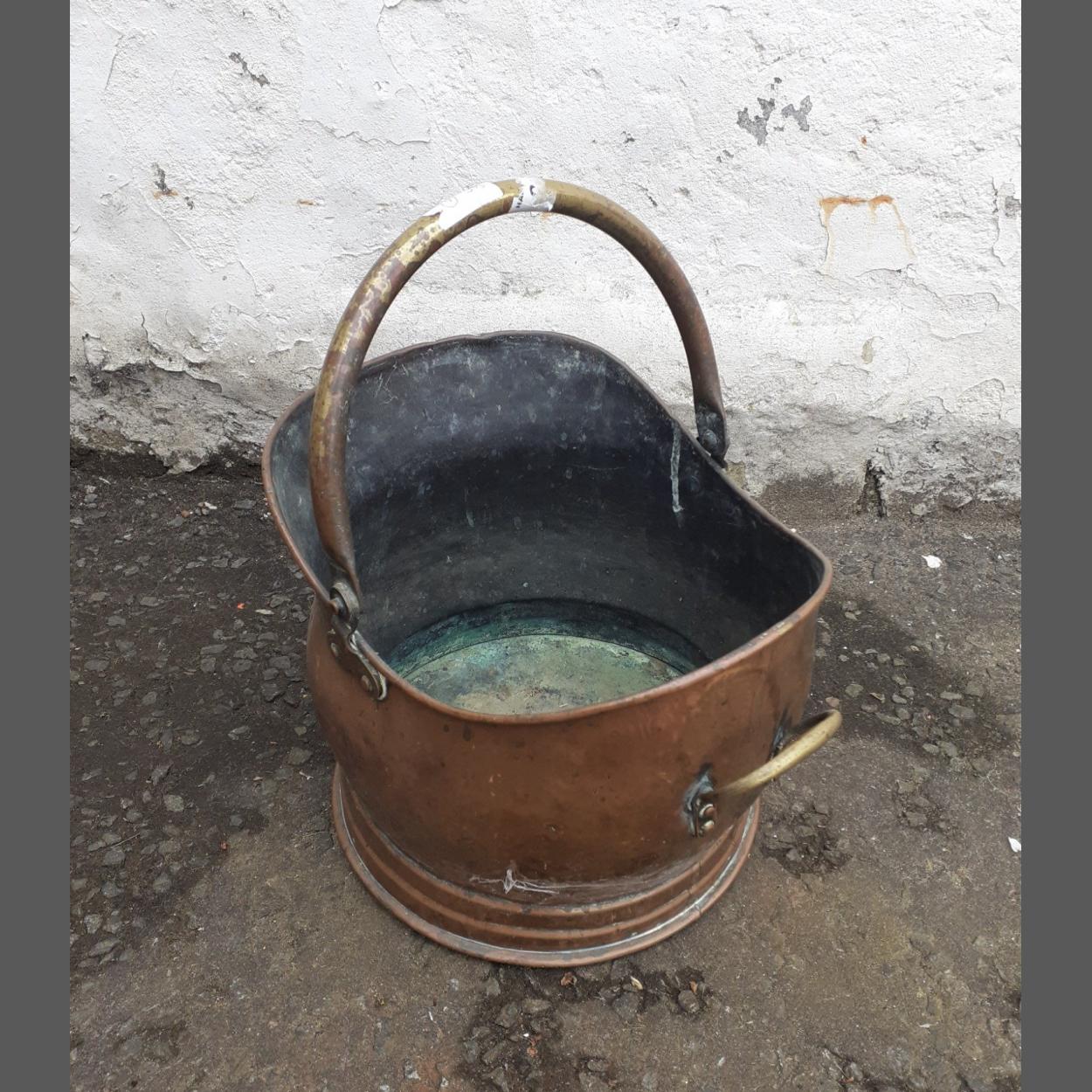 Vintage COPPER COAL SCUTTLE with brass handle dimensions 33cm height x 39cm length