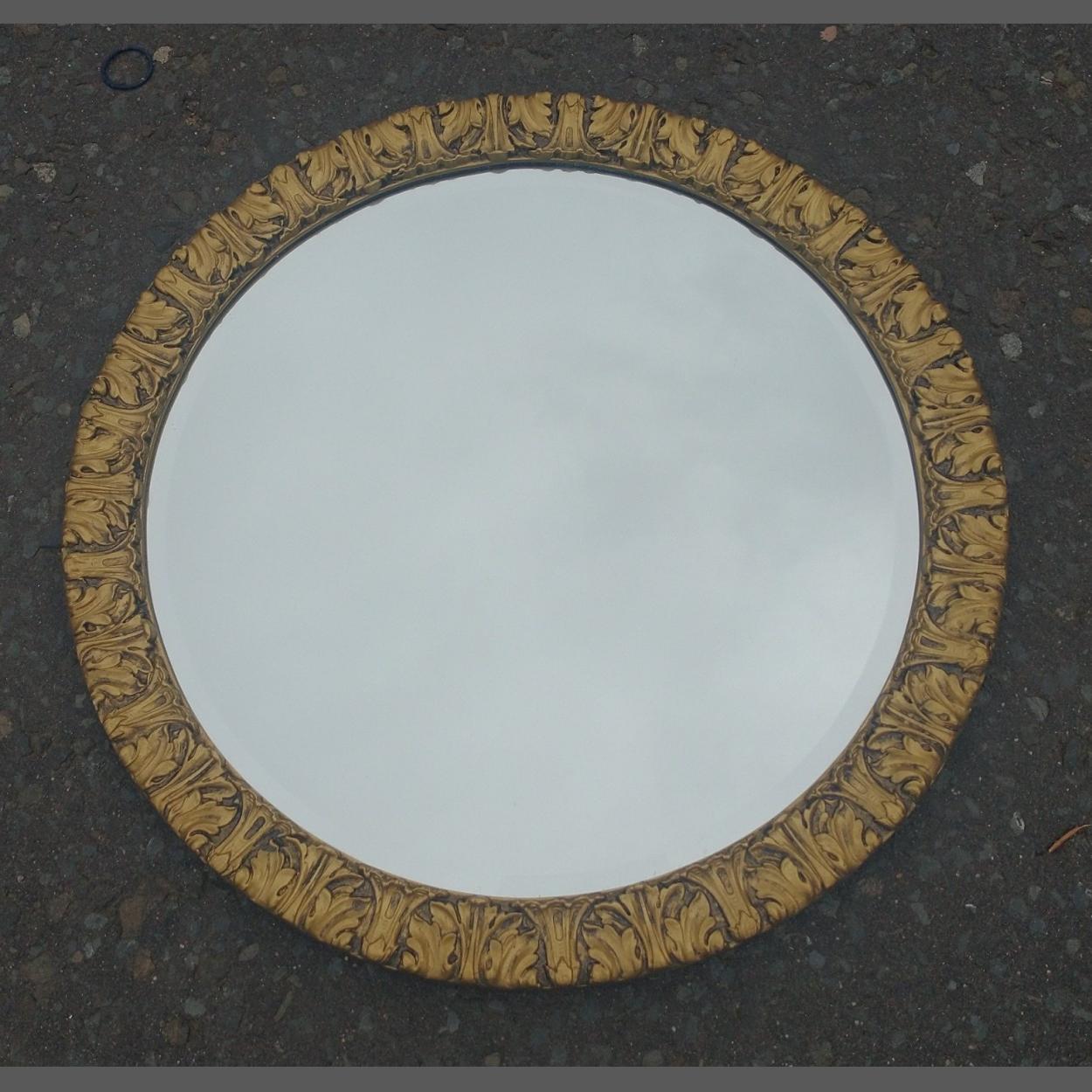 A circular wall mirror, 50cm dia, with a lily-form decorative frame