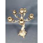 A five branch, 6 light brass candelabra with classical female figure, stands 43cm tall approx