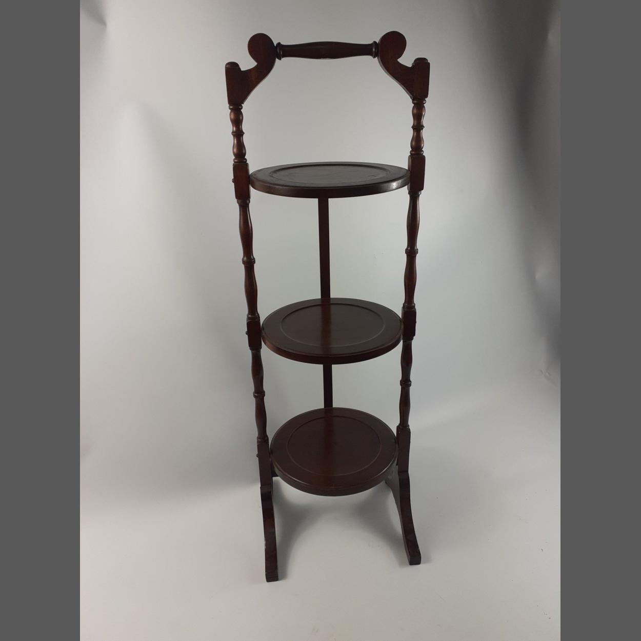 Antique oak three tier folding cake stand. Good working order. 85cm tall approx.