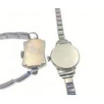 A 375 stamped yellow gold ladies yellow gold wristwatch with a rolled gold strap - gross weight 16.15g approx and a 375 stamped yellow gold cased ladies wristwatch with a 375 stamped bracelet - gross weight of this watch 16.85g approx 17 jewels - total gross weight of both watches 33g approx