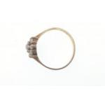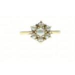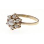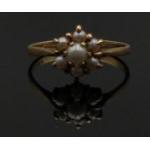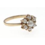A 375 stamped gold ring set with seven seed pearls, Size P, gross weight 1.85g