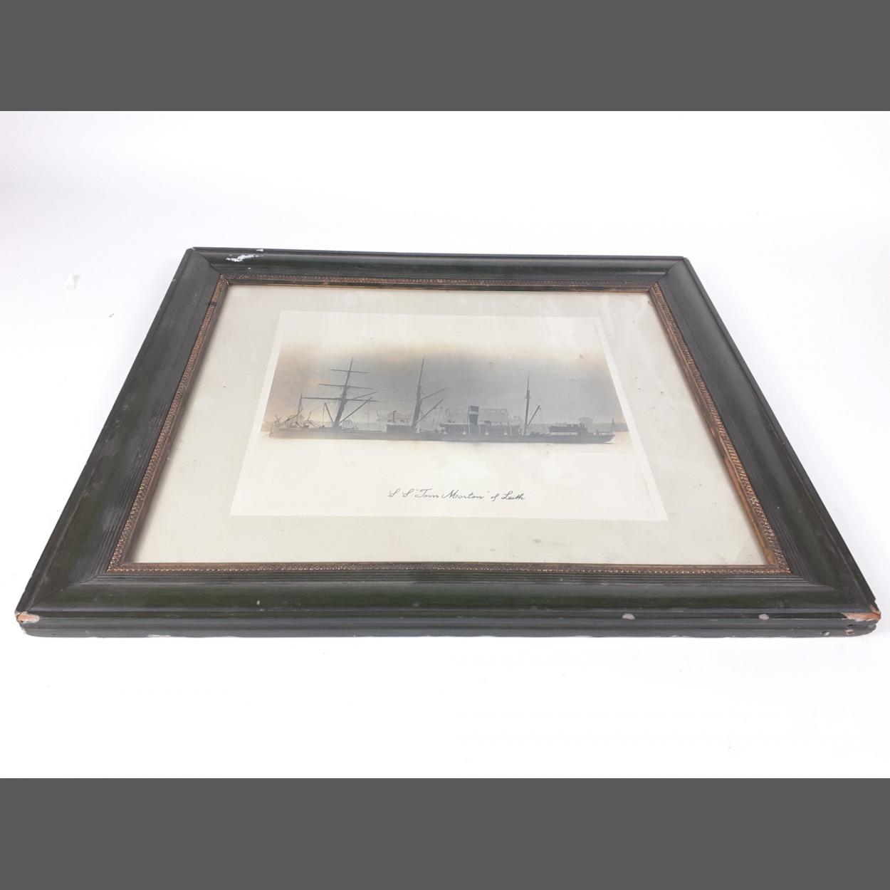 A historic photo of the SS 'Tom Morton' of Leith which went missing in 1886 on a journey from Cardiff to Odessa, frame size 51 x 44cm approx