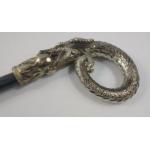 A truly splendiferous swaggering cane, with a white metal dragon biting down on an orb, 98cm long, NOT for use as a walking stick