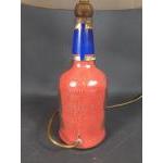 AN INTERESTING vintage 'British Navy Pusser's Rum' bottle converted into a lamp, complete with red powder for a unique, authentic look. This piece also comes with a shade. 43cm tall. Good condition.