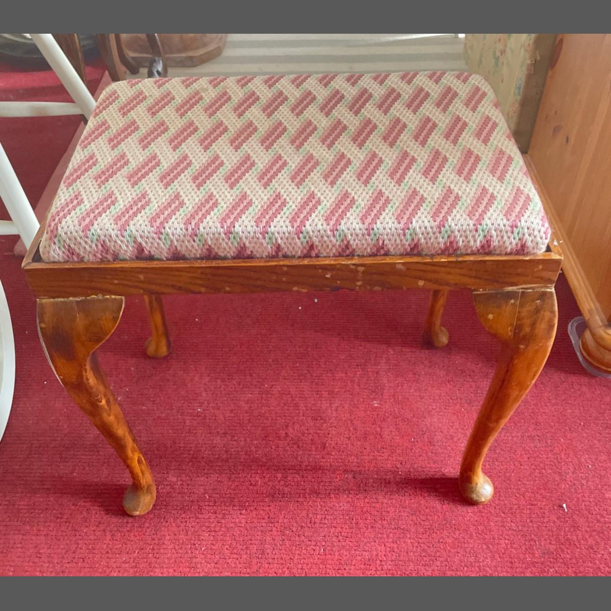 A VINTAGE stool with tapestry long-stitch(really nice handiwork) 43cm high x 43cm long x depth 28cm approx