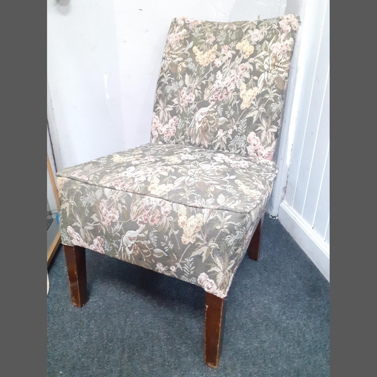 A small comfy fabric covered chair - dimensions width 46cm x depth 46cm x 77cm height