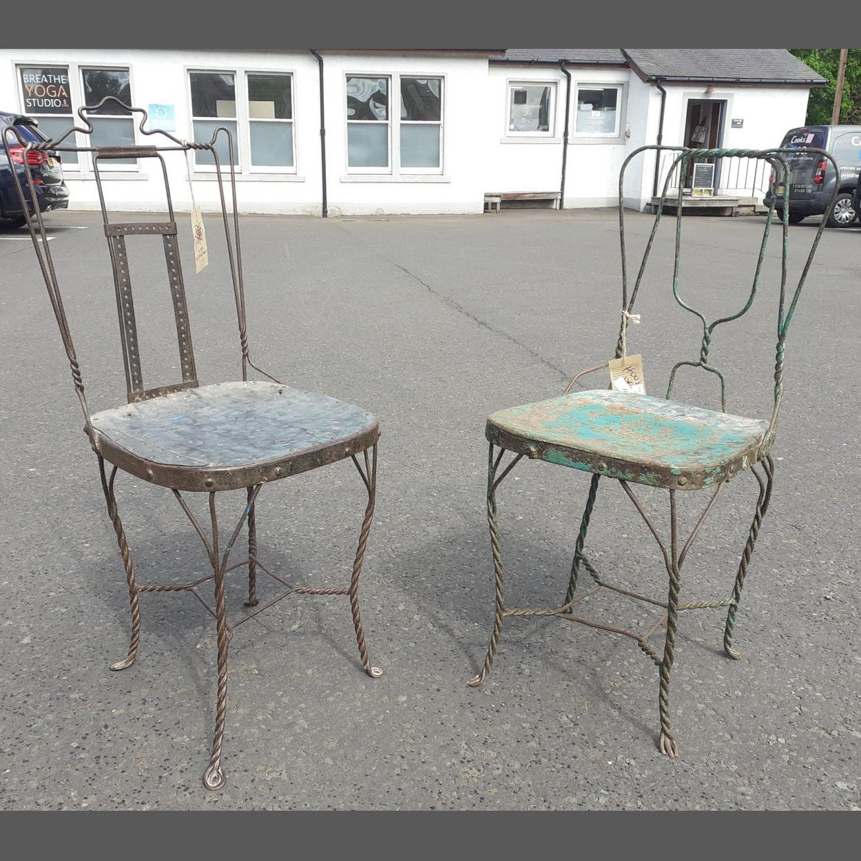 IDEAL FOR THE GARDEN! Two recycled Indian chairs height 93cm approx, great patina - SIMPLY DEVINE!
