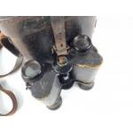 Boer War officers field glasses / binoculars in original leather case. Broad arrow marked, case named to John Barker & Co. Kensington. Case lid has become detached. Optically good and screw for focusing works well.