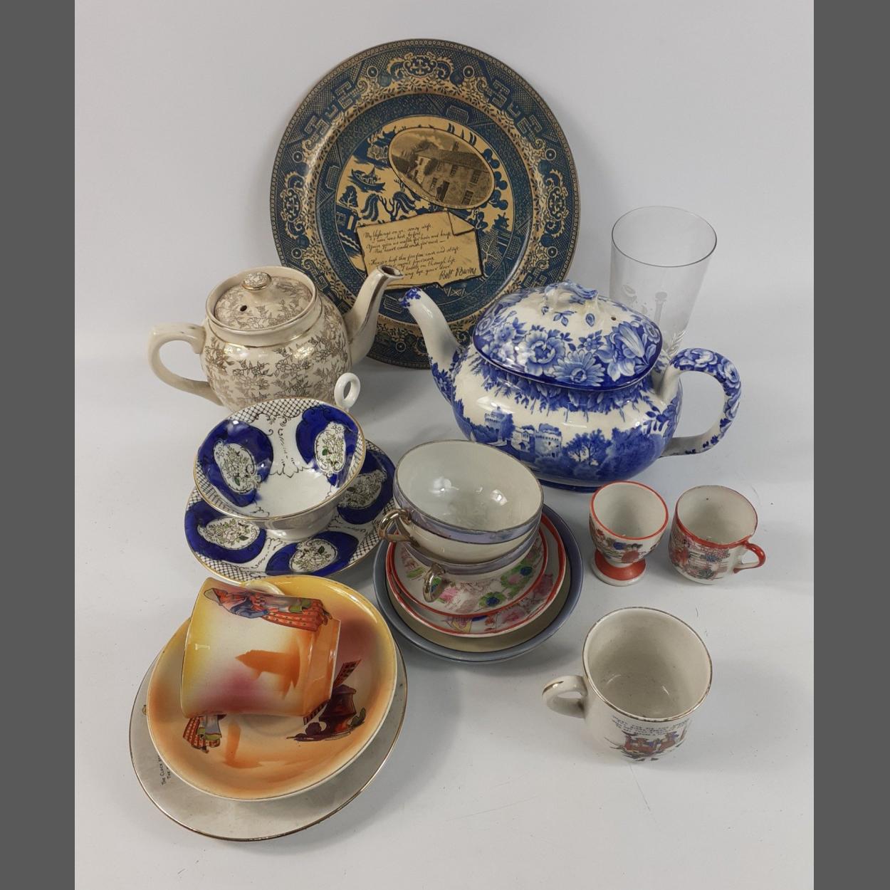 Mixed lot of ceramics to include Sadler Teapot, Wood & Sons Nunney Castles blue and white teapot and others