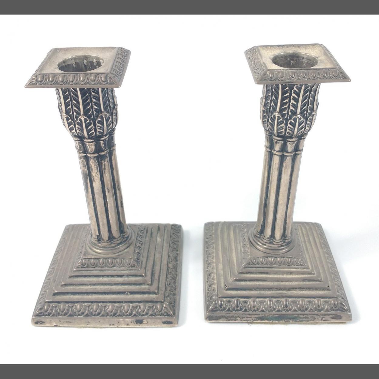 A pair of silver candlesticks hallmarked London 1898 standing 16cm high gross weight 814g