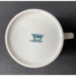 A box full of Thomas China Broad Gold to include 1 teapot and lid, 15cm high, 1 coffee pot and lid, 24cm high, 1 lidded sugar jar and cover, 6cm high, 6 cups, 7cm high and 6 saucers, 15cm high. Condition - all in good/fair condition. Slight faint staining on rim of coffee cup.