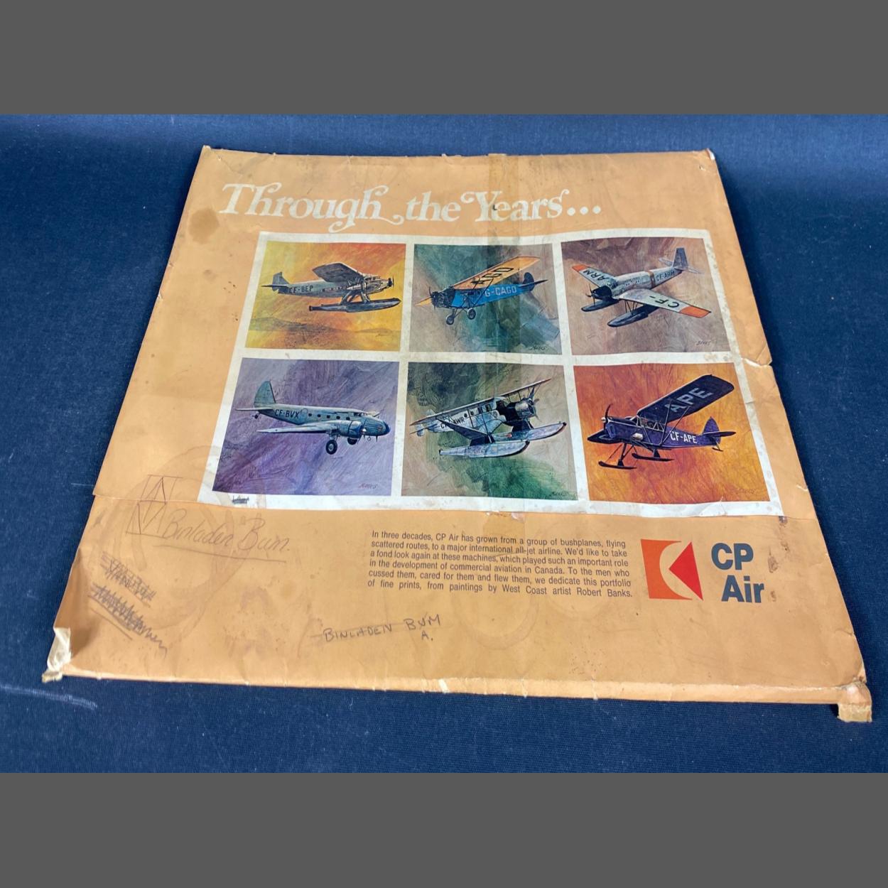 10 fine prints of bush planes from CP AIR CANADA by West Coast artist ROBERT BANKS still in original folder to include - Fairchild 71B - Barkley-Grow T8P-1 - Junkers Ju52 C89 - Bellance Aircruiser 66-70 - Noorduyn Norseman V - Ford 6-AT-AS Tri-Motor - De Havilland DH80 Puss Moth - Consolidated Vultee Canso - Fokker Universal - Boeing 247D, folder size 42x31cm