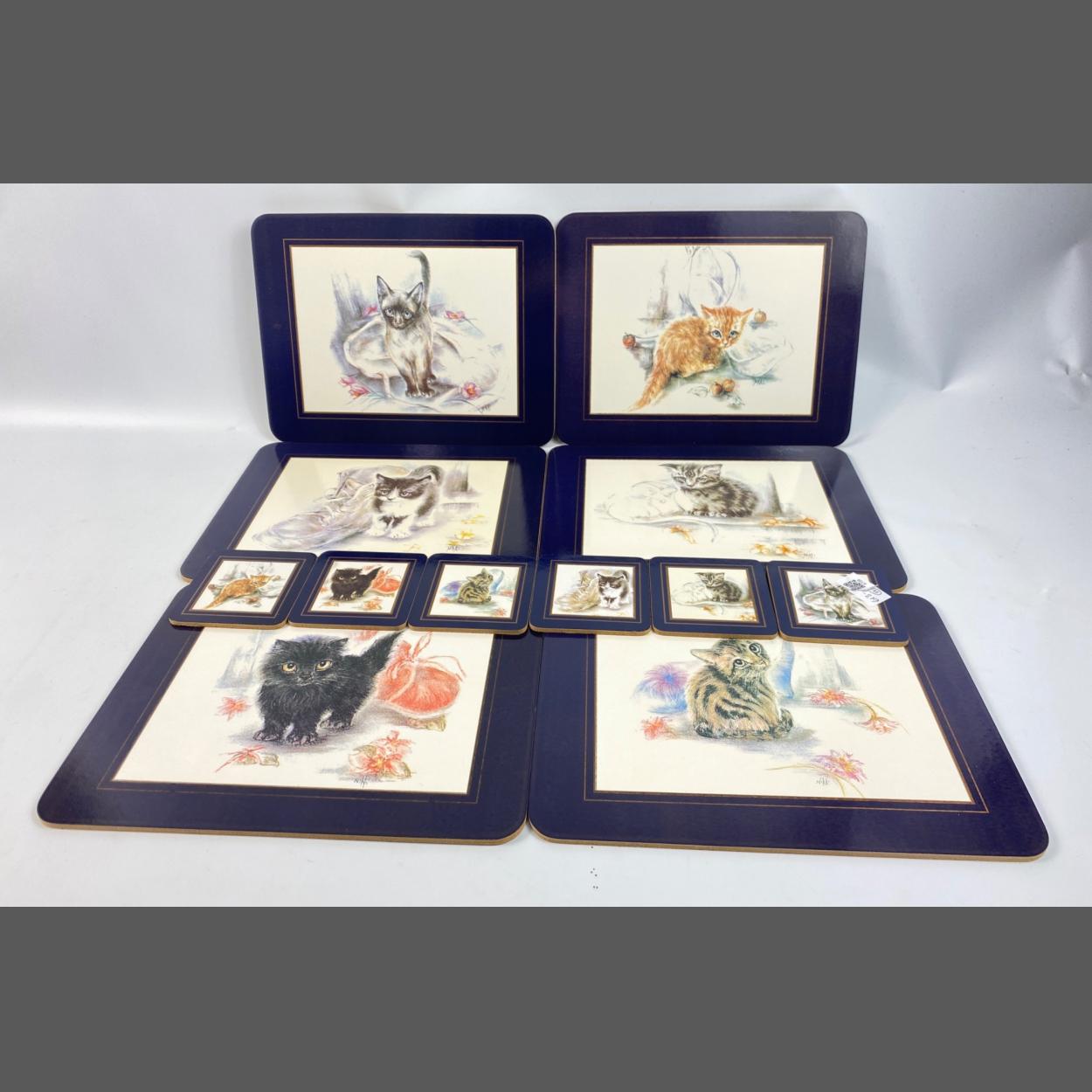Feline placemats to include a set of 6 by Cloverleaf and a further set of 6 with matching coasters