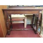 EDWARDIAN A SOLID OAK stretchered wall table with hand carved legs and features / 3ft length x 18” depth x 3ft height approx