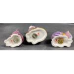 Three ROYAL CROWN DERBY cats one sitting down with gold button (9cm long), and 2 silver button 13cm high and 8cm high