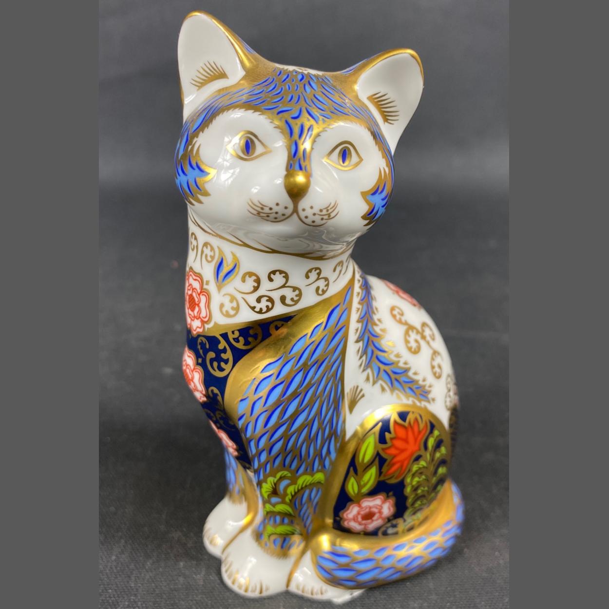 ROYAL CROWN DERBY gold button FIRESIDE CAT exclusive to Peter Jones of Wakefield from a limited edition of 950 standing approx 14cm tall