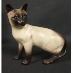 Three BESWICK CATS , the first a Siamese stands 17cm tall, the other two, grey and ginger are both 21cm, the ginger cat has been damaged and repaired