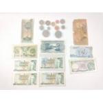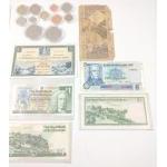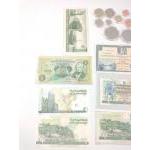 A quantity of collectible Bank Notes to include Clydesdale and North Of Scotland Bank 1st March 1961 One Pound bank note, a Glasgow 1st June 1955 Clydesdale and North Of Scotland Bank Ltd One Pound Note - both notes in good condition - also an ALGERIAN 5 DINAR note in used condition - also RBS two sequential One Pound bank notes ending 297 and 298 and also 4 further RBS One Pound Notes in good condition - also a BOS August 5th 1998 Five Pound Note and a BOS November 1984 One Pound Note in good condition with lastly a collection of two FIVE POUND Coins celebrating THE QUEEN MOTHER's 100th Birthday and plastic cased £2 coins x 2 and a One Pound coin Fifty pence piece, 20 pence 10 pence 5 pence 2 pence and one pence