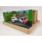 CORGI Mini Seven & Mini Miglia 1999 Winners Diorama in home built display case. Slight crack to perspex