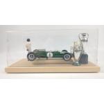 SPARK LOTUS 33 No. 1 Winner German Grand Prix 1965 JIM CLARK. Diorama with cups and standing figure in home built display case.