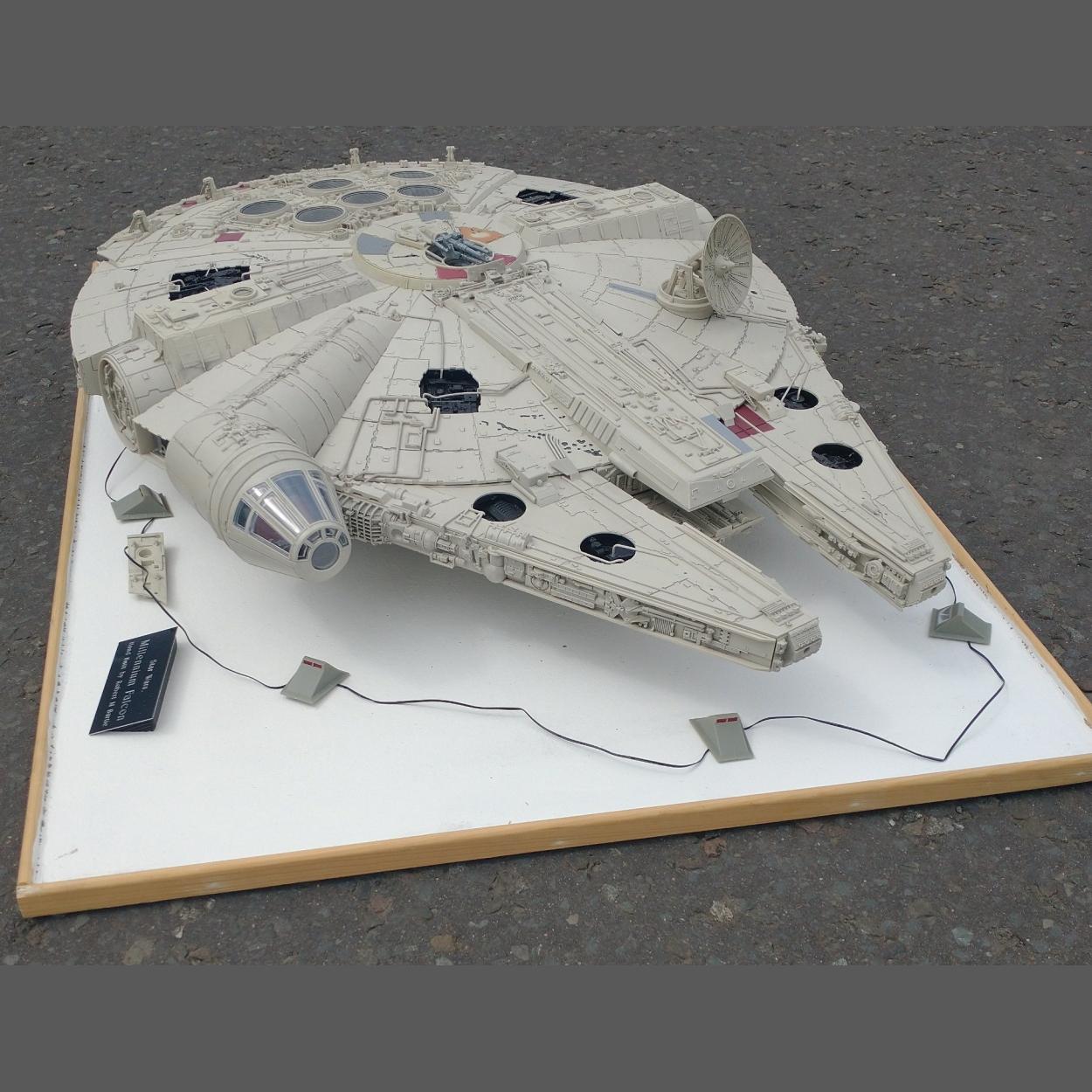 Impressively large DEAGOSTINI STAR WARS Millennium Falcon built model in hand built case . Case measures 88 x 68 x 27 cm approx
